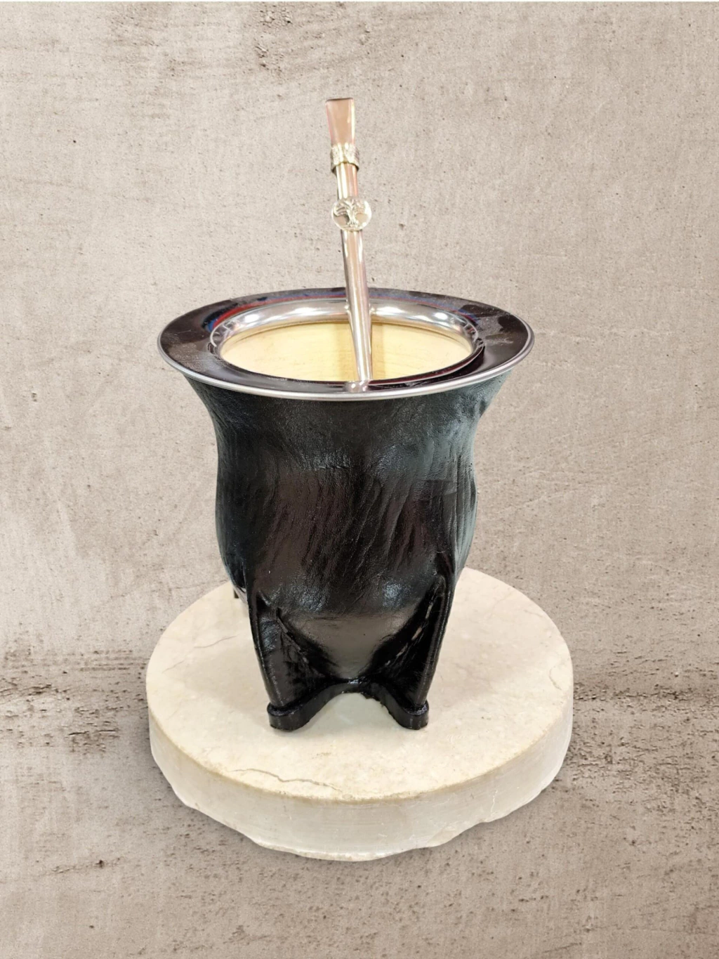 EL SET - Incluye un  Mate de calabaza artesanal forrado en cuero con un anillo de aluminio en la parte superior y una bombilla de acero inoxidable..